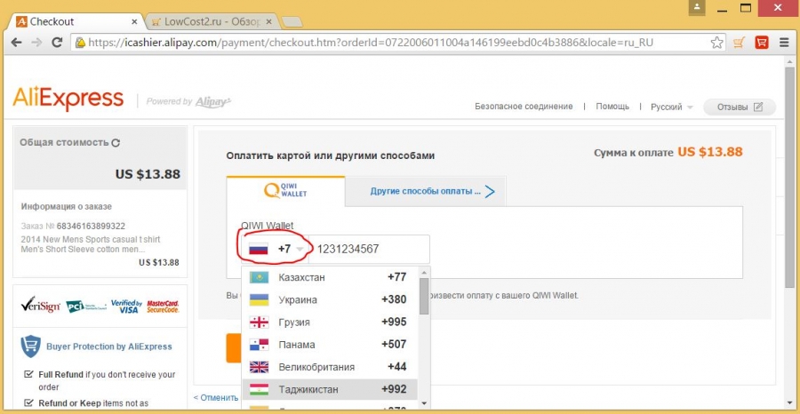 Оплата заказа на Алиэкспресс через платежную систему Qiwi Wallet