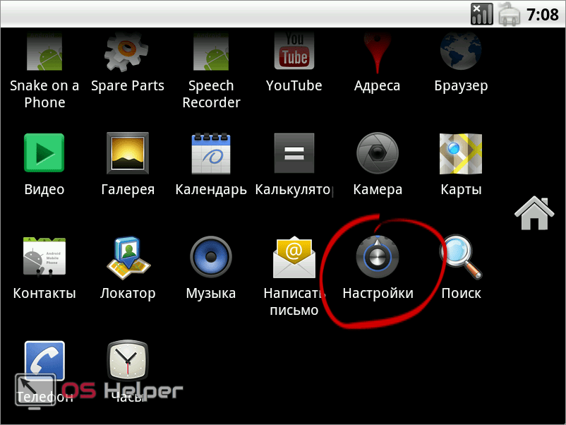 - Заходим в главное меню, выбираем ярлык настроек;