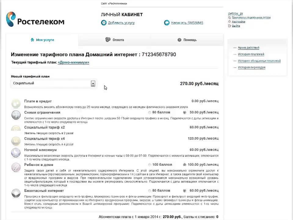 Управление тарифом/услугой интернет | Ростелеком г.