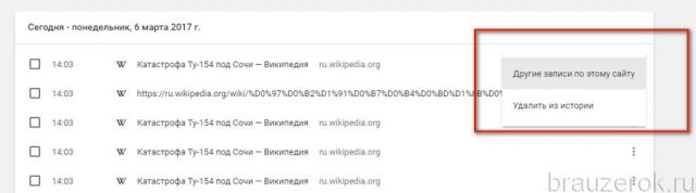 ΠΡΠΈΡΡΠΊΠ° ΠΈΡΡΠΎΡΠΈΠΈ Π² Google Chrome ΠΈΠ· ΠΌΠ΅Π½Ρ Π±ΡΠ°ΡΠ·Π΅ΡΠ°