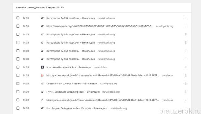 ΠΠΎΠ»Π΅Π·Π½ΠΎ! ΠΡΡΡ Π΅ΡΠ΅ ΠΎΠ΄Π½Π° ΡΠ°Π·Π½ΠΎΠ²ΠΈΠ΄Π½ΠΎΡΡΡ ΠΌΠ΅ΡΠΎΠ΄Π°, ΡΡΡΡ Π² ΡΠΎΠΌ, ΡΡΠΎ ΠΏΠΎΡΠΈΡΡΠΈΡΡ ΠΈΡΡΠΎΡΠΈΡ Π±ΡΠ°ΡΠ·Π΅ΡΠ° ΠΡΠ³Π» Π₯ΡΠΎΠΌ ΠΌΠΎΠΆΠ΅ΠΌ ΡΡΠ°Π·Ρ ΡΠΏΠΈΡΠΊΠΎΠΌ. ΠΠ»Ρ ΡΡΠΎΠ³ΠΎ Π·Π°ΠΏΠΎΠ»Π½ΡΠ΅ΠΌ ΠΏΡΡΡΡΠ΅ ΠΊΠ²Π°Π΄ΡΠ°ΡΠΈΠΊΠΈ ΡΠ»Π΅Π²Π° ΠΎΡ Π·Π°ΠΏΠΈΡΠ΅ΠΉ, Π° Π·Π°ΡΠ΅ΠΌ ΠΆΠΌΠ΅ΠΌ Π½Π° ΠΊΠ½ΠΎΠΏΠΊΡ Π² Π²Π΅ΡΡ Π½Π΅ΠΉ ΡΡΡΠΎΠΊΠ΅ β Β«Π£Π΄Π°Π»ΠΈΡΡΒ».