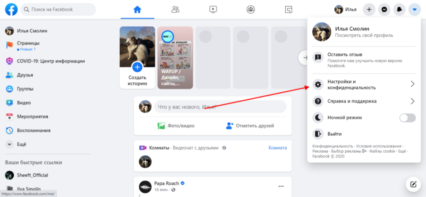 Пролистайте страницу до самого низа и найдите графу «Настройки и конфиденциальность». Нажмите на нее. Далее нажмите на кнопку «Настройки».