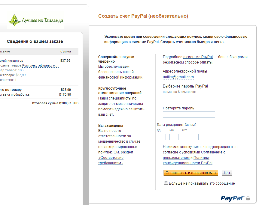 Чтобы открыть счет Paypal, вам необходимо:- Электронная почта.