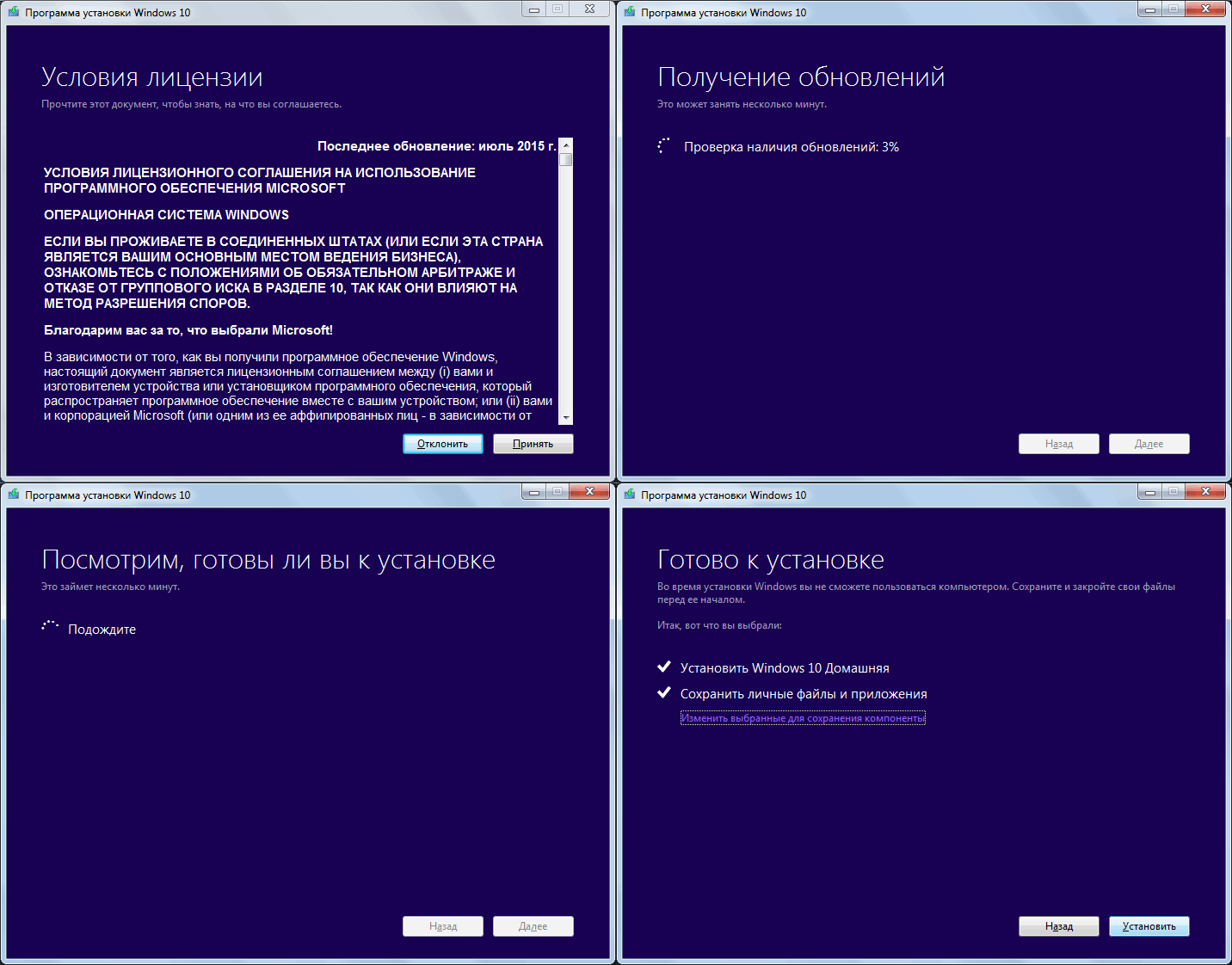 6. После успешной загрузки автоматически стартует процедура обновления вашего устройства до Windows 10 и вам останется только следовать её инструкциям.