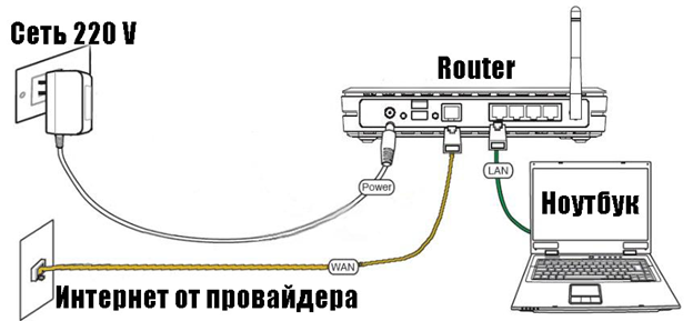 Подключение провода не требует каких-то специальных навыков. Обычно, в комплект с маршрутизатором входит интернет-кабель, имеющий с обеих сторон разъёмы типа RJ-45. Необходимо соединить ноутбук и роутер этим проводом. Один конец нужно поместить в гнездо LAN маршрутизатора. Таких слотов может быть несколько и можно выбрать любой. Обратите внимание: витая пара должна быть подключена к роутеру через порт «Internet» или «WAN». Второй конец кабеля соединяется с сетевой картой ноутбука: