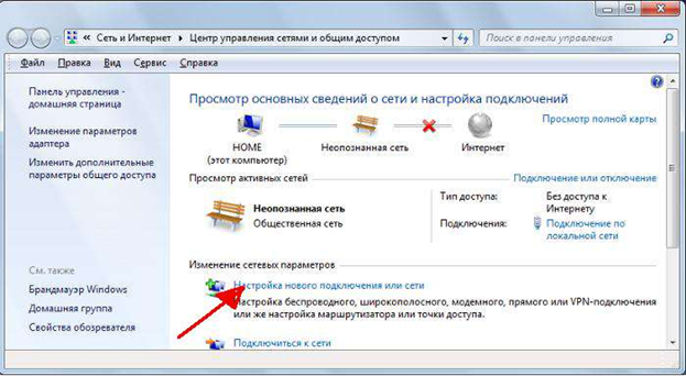 - Кликнуть на «Настройка нового подк. либо сети»;