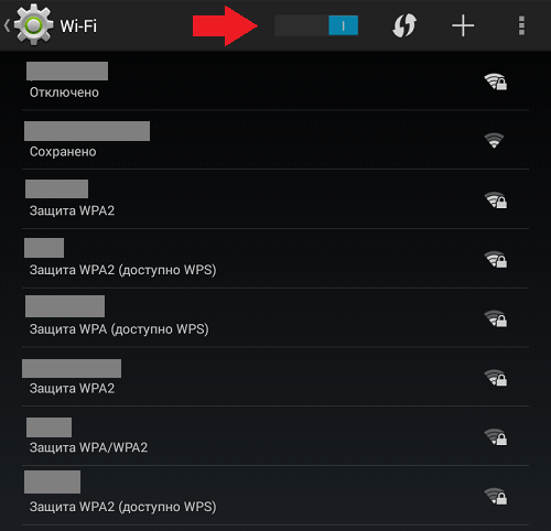 Точно также происходит и с iPhone — раздел «Настройки», ползунок Wi-Fi в активное положение.