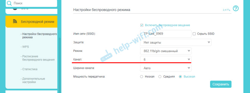 Если это не помогает, тогда смените канал вашей Wi-Fi сети в настройках роутера. Как это сделать, я писал в статье как найти свободный Wi-Fi канал, и сменить канал на роутере. Просто заходим в настройки роутера и ставим статический канал. Например, 6-той. Так же можно поэкспериментировать с настройками ширины канала и режима работы. Либо «смешанный», либо «только n». Никаких «только g», «b/g».