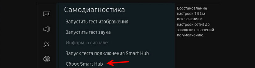 В некоторых телевизорах настройки Smart Hub можно сбросить в разделе настроек «Smart Hub» – «Сброс Smart Hub».