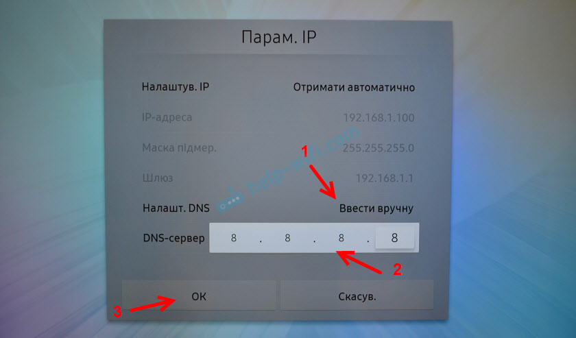 Если проблема не была решена – нужно попробовать в настройках сети на телевизоре Samsung прописать статический DNS-сервер.