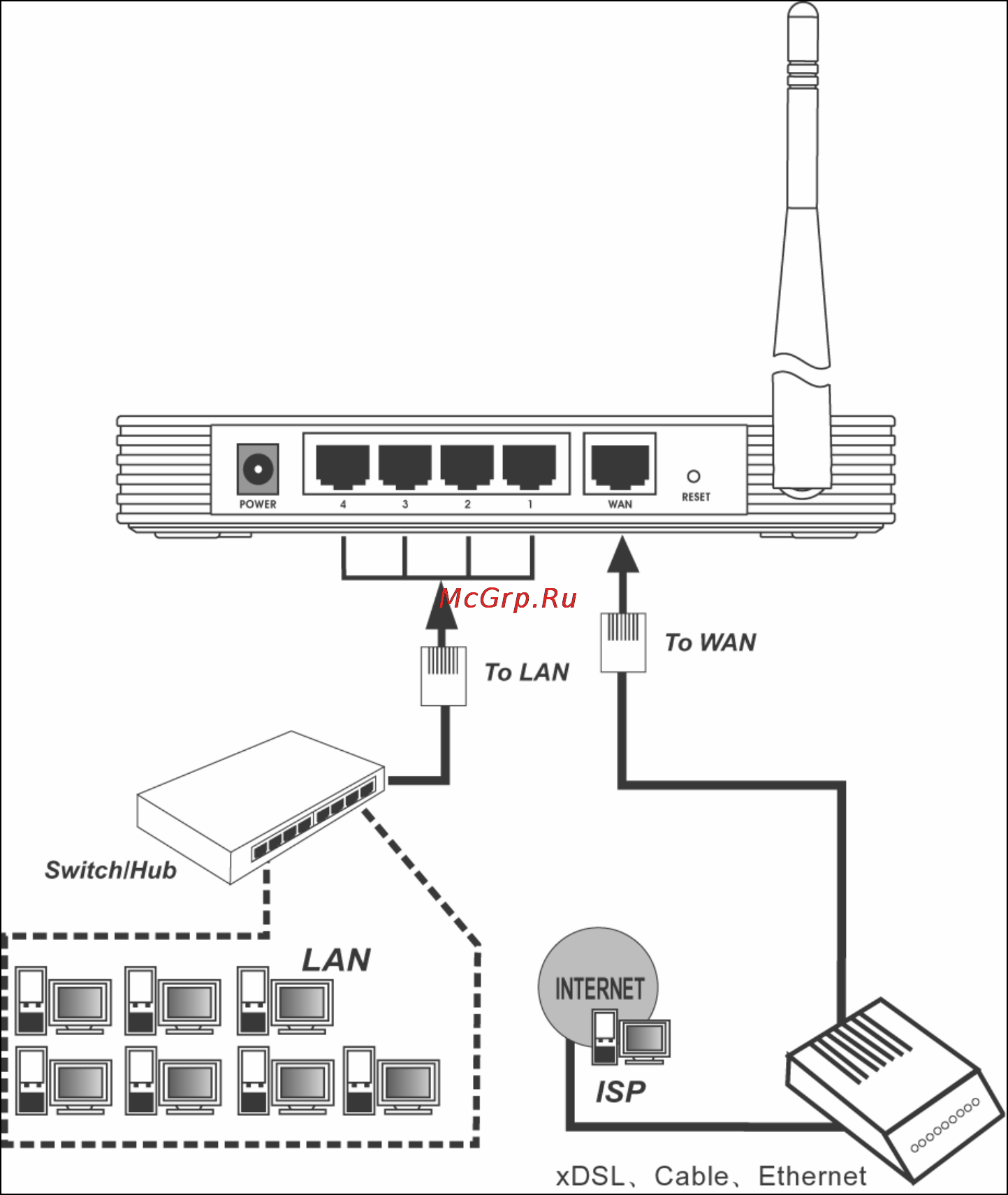 Коаксиальный кабель RF — навинчиваемый.Отключив шнур питания маршрутизатора, подключите кабель Ethernet (он должен быть в комплекте с маршрутизатором) в порт WAN / uplink маршрутизатора. Цвет порта WAN может отличаться от цвета других портов Ethernet на задней панели маршрутизатора.