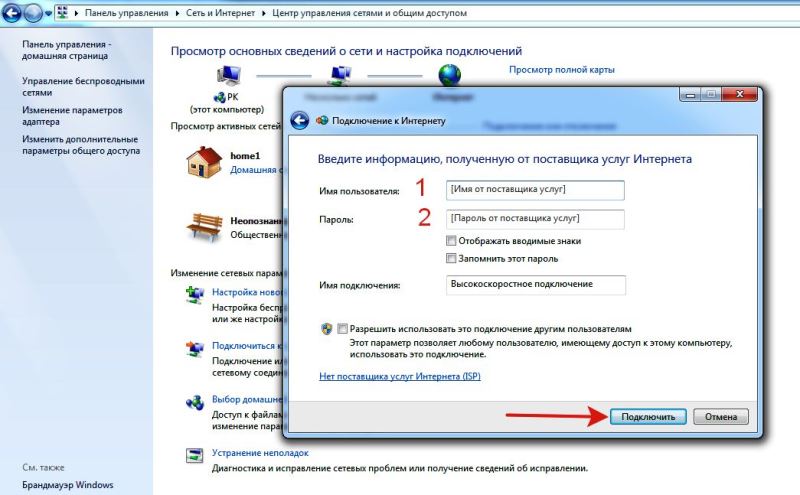 На этом настройка сетевой карты будет завершена. Теперь нужно настроить непосредственно интернет-подключение. Для этого нужно повторно войти в «Центр управления сетями» и действовать так: