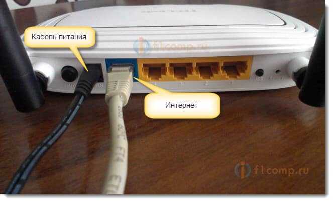 Прикручиваем к маршрутизатору антенны (если они съемные), затем подключаем кабель питания и включаем его в розетку. В синий WAN разъем подключаем сетевой кабель, интернет. Который в ваш дом провел провайдер (хорошо бы быть уверенным, что интернет работает и оплачен. А то, в процессе настройки могут возникнуть проблемы, и вы будете думать, что во всем виновен маршрутизатор, или способ настройки).