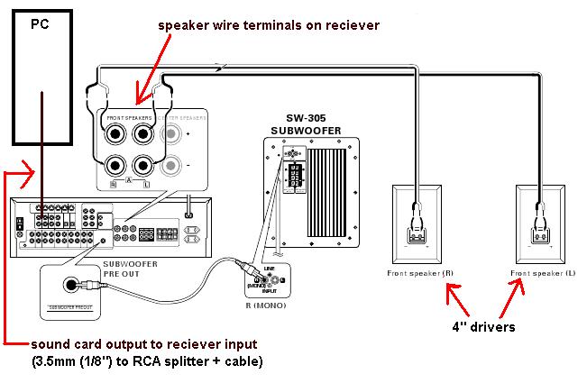 Нужно разделить провод вниз по центру на его конце, используя кусачки, чтобы обрезать изоляцию от наконечника. Держите концы провода отдельно. Колонки и АВ-ресивер имеют акустические клеммы, которые обозначены как «+» и «-«.Следите за совпадением цветов на клеммах (как правило, черный и красный). Нужно, чтобы цвета на каждой стороне вашего акустического кабеля были подключены к клеммам одинакового цвета. Здесь важно быть последовательным, чтобы поддерживать правильную полярность, если вы вставите черный провод в черный разъём, убедитесь, что делаете также при каждом последующем соединении. Затем нужно подключить сабвуфер. Делается это с помощью сабвуферного кабеля (моно RCA), подключите выход для сабвуфера на AV-ресивере к входу LFE сабвуфера.
