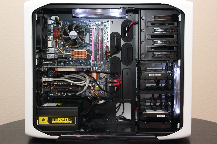 После этого стоит рассмотреть интерьер корпуса. Здесь важна, прежде всего, функциональность. Обратите внимание на подставки для жестких дисков. Интересным решением являются корпуса с возможностью извлечения дисков сбоку. Также нужно посмотреть на расположение блока питания. Чаще всего он находится в верхней части задней стороны корпуса.