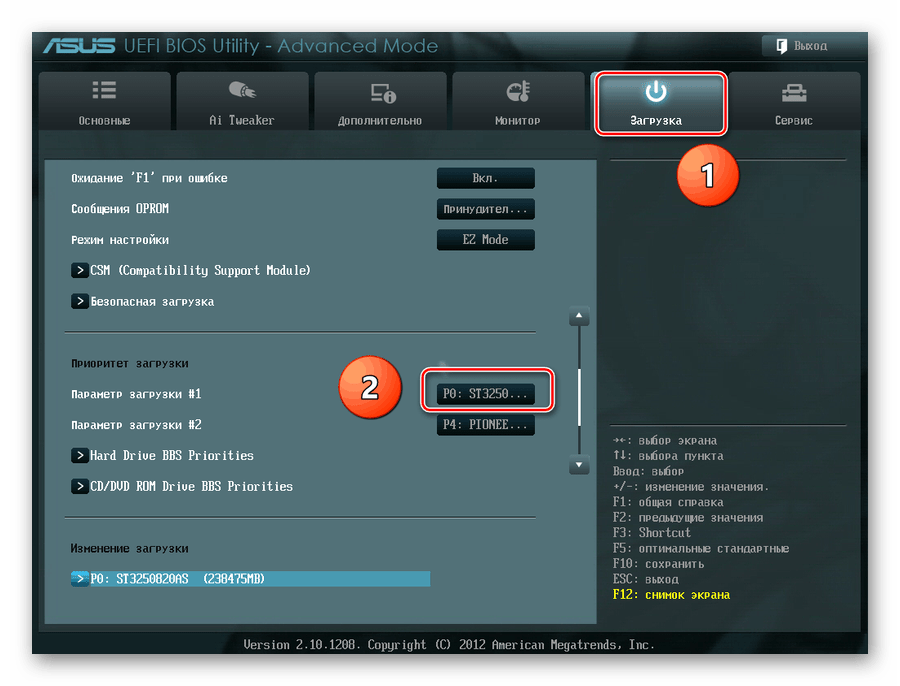 - Перезагружаем ПК и входим в BIOS посредством нажатия клавиши Delete или Esc после прохождения первоначального теста. В зависимости от версии и марки материнской платы возможны и иные варианты: F2, Ctrl + F2, F8 и другие. Здесь меняем приоритет загрузки на нужный нам. Подтверждаем изменения в настройках и выходим из прошивки.