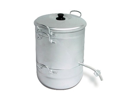 - Трубочку для отвода напитка вставляют в боковое отверстие центрального резервуара, а второй конец выводят в предварительно простерилизованную стеклянную бутылку или банку.