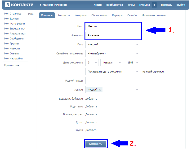 - 3.3 Смена фамилии через десктопную версию социальной сети