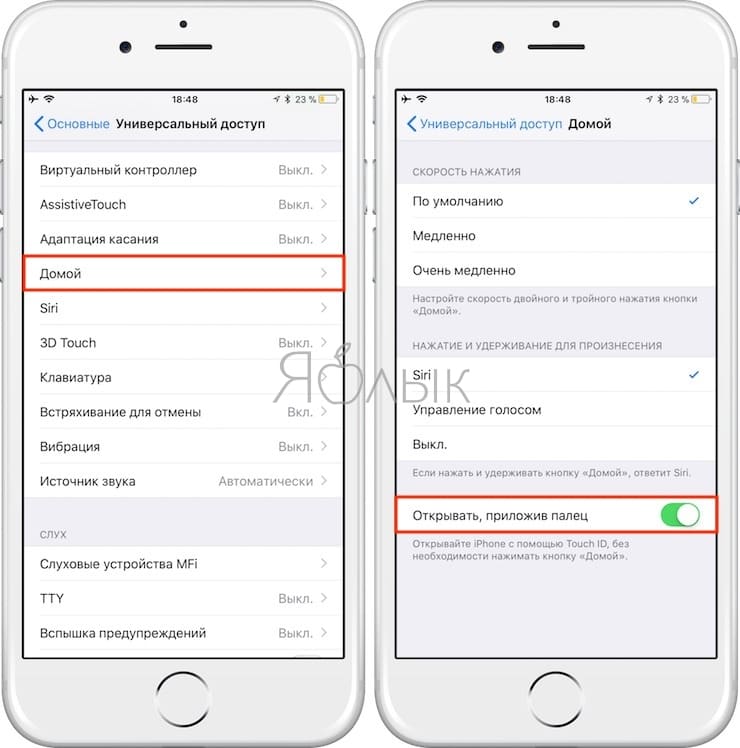 - Далее перейти в Универсальный доступ, Касание.