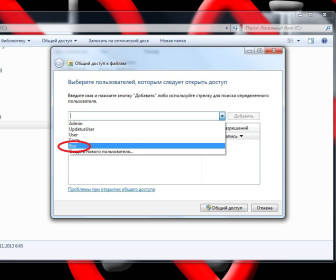 Из появившегося перечня действий выбираем «Общий доступ ». В новом появившемся списке нажимаем «Конкретные пользователи». Теперь в окне «Общий доступ к файлам» нажимаем на выпадающий список, из которого выбираем конкретного пользователя, который есть в вашей сети или же нажимаем на пункт «Все», если вы хотите, чтобы папка была доступной для любого устройства, подключенного к сети.