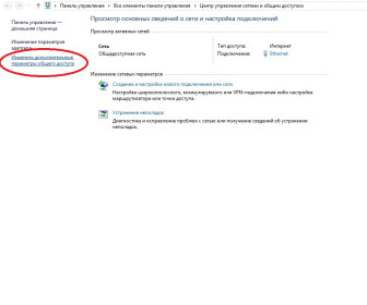 В следующем окне перейдите по ссылке «Изменить дополнительные параметры общего доступа».