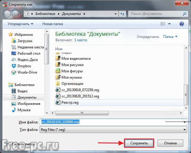 Шаг 5. Выбрать папку, куда будет сохранена копия реестра и ввести ее имя.