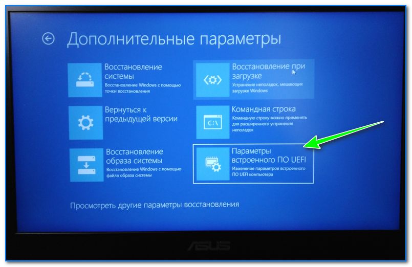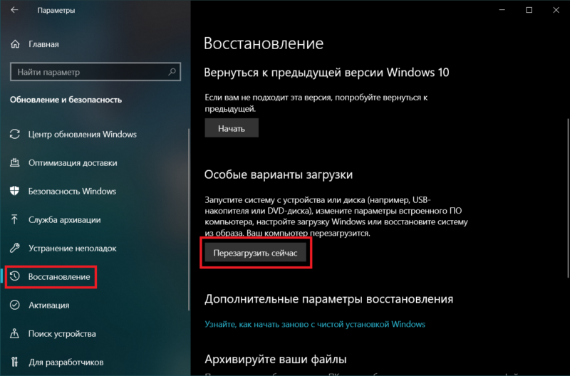 Windows 10: Параметры запуска Обновление и восстановление безопасности Расширенный запуск Перезагрузить сейчас Устранение неполадок Дополнительные параметры Параметры микропрограммы UEFI Перезапустить
