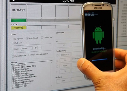 Переустановить ПО получится, если не поврежден загрузчик. Чтобы проверить это, нажмите кнопку “Вкл./выкл.”. Если появится изображение робота или какой-нибудь знак, например, “!”, можно сделать предположение, что произошел сбой в работе ПО. После этого подключите аппарат по USB-кабелю к ПК. Нажмите кнопку “Вкл./выкл.” и Volume Plus. ПК отыщет девайс. В 95% случаев можно успешно установить ОС с помощью одной из вышеперечисленных программ для прошивки телефона через компьютер.