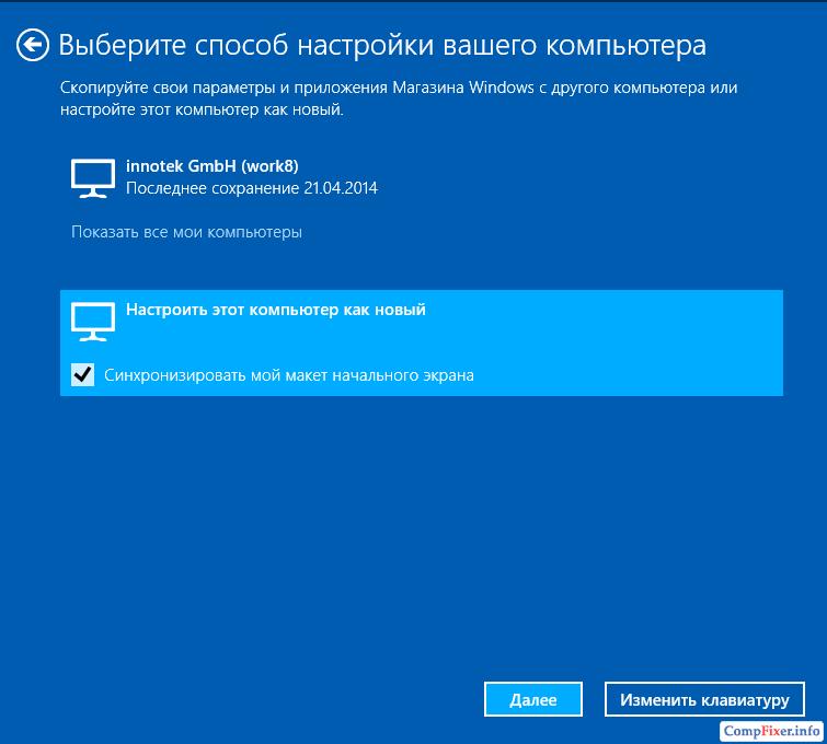 Три варианта действий при сбросе компьютера до заводского состония