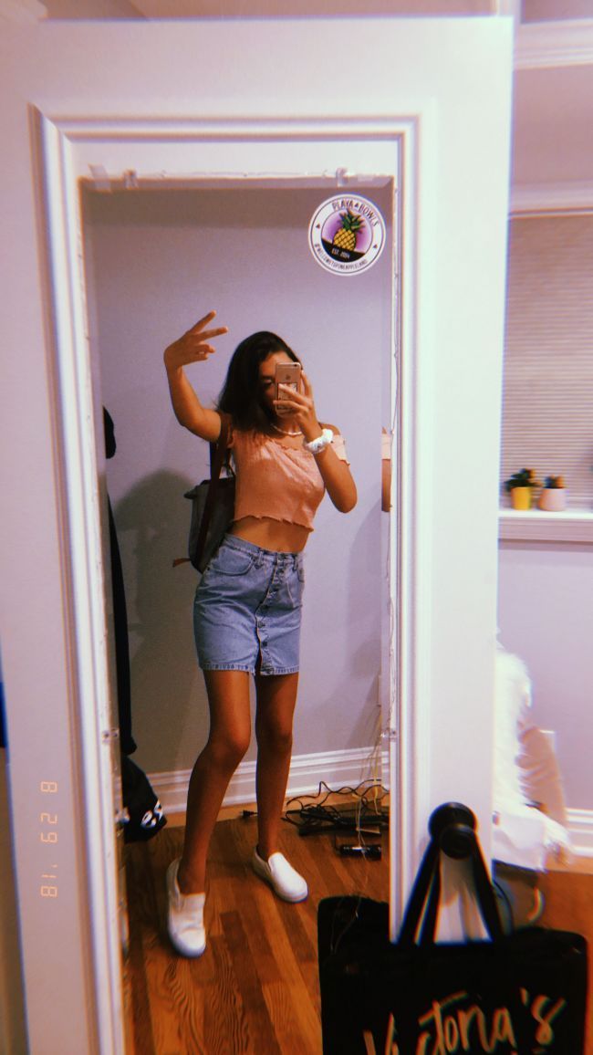 Небольшой секрет: камеру лучше держать на уровне груди, чтобы не искажались пропорции. Если вы расположите устройство ниже, то может появиться второй подбородок, а если поднимите слишком высоко, ноги будут выглядеть короче.