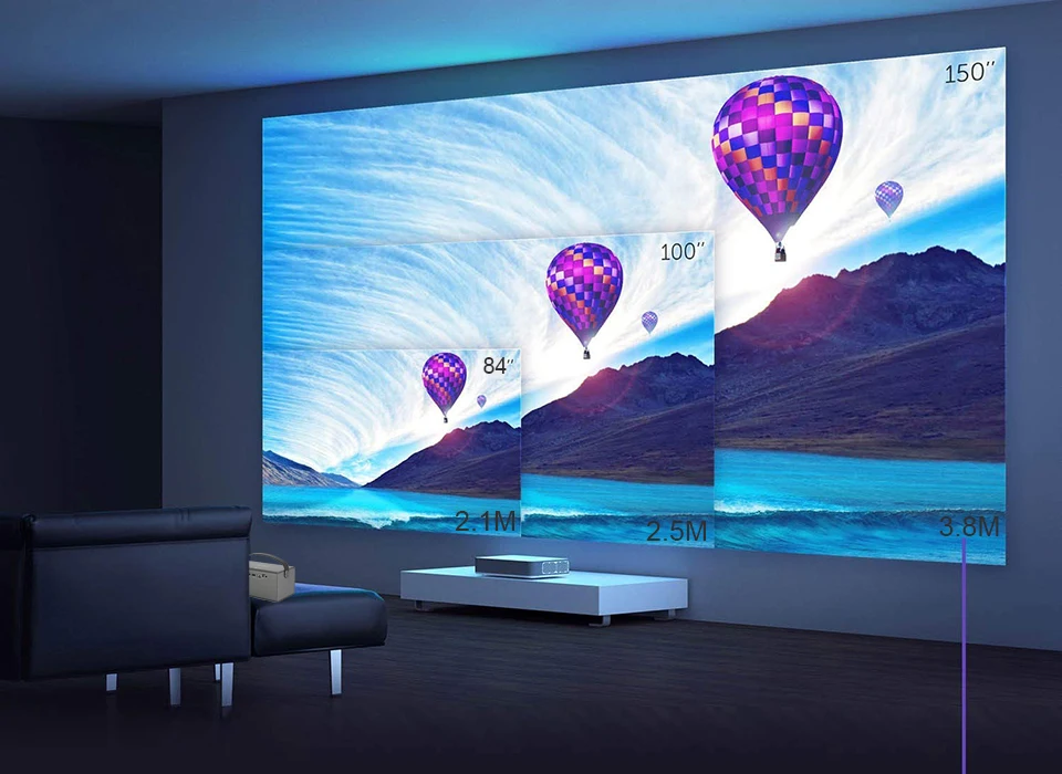 Размер экрана проектора шире, чем у телевизора. Размер самого большого телевизора составляет около 80 дюймов, но ваш экран может быть шире, если позволяет площадь проецирования.
