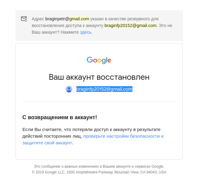 Новую резервную почту можно использовать для восстановления аккаунта только через 14 дней.