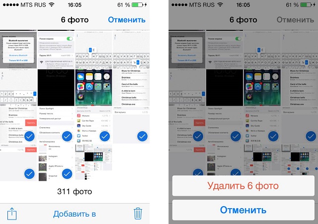 Способ как видите простой, но удалять десятки, если не сотни фотографий таким методом очень долго. Поэтому создатели iOS позаботились о возможности удаления нескольких снимков сразу.