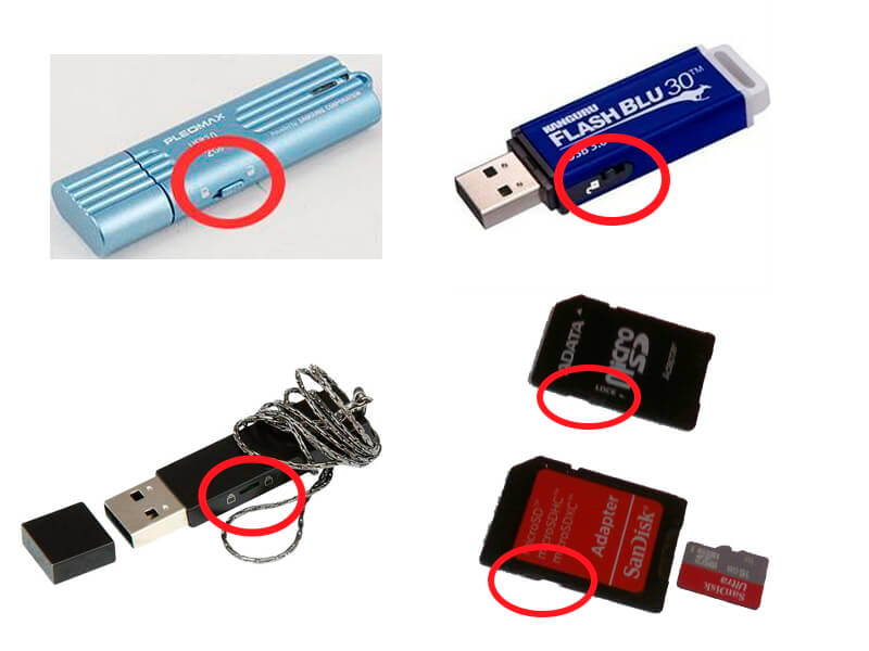 Изображение 2. Расположение блокиратора на флешках и SD-картах.