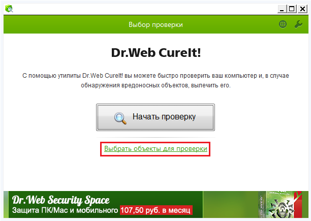 - Скачайте и запустите программу Dr.Web CureIt.