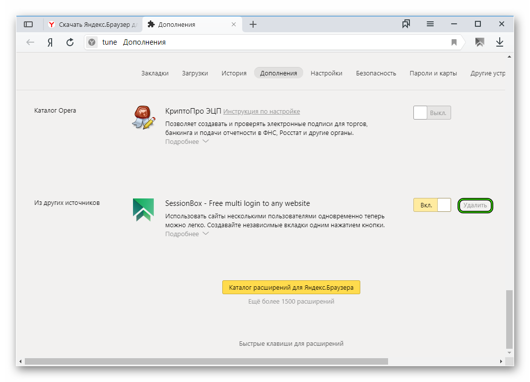 - Яндекс.Браузер несовместим с другими установленными приложениями