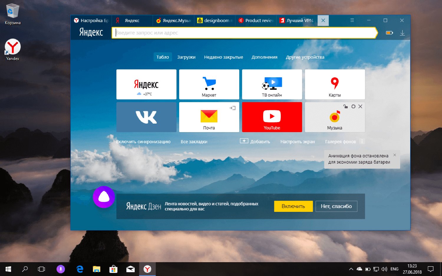 - Нажмите Отключить Панель инструментов Яндекса.