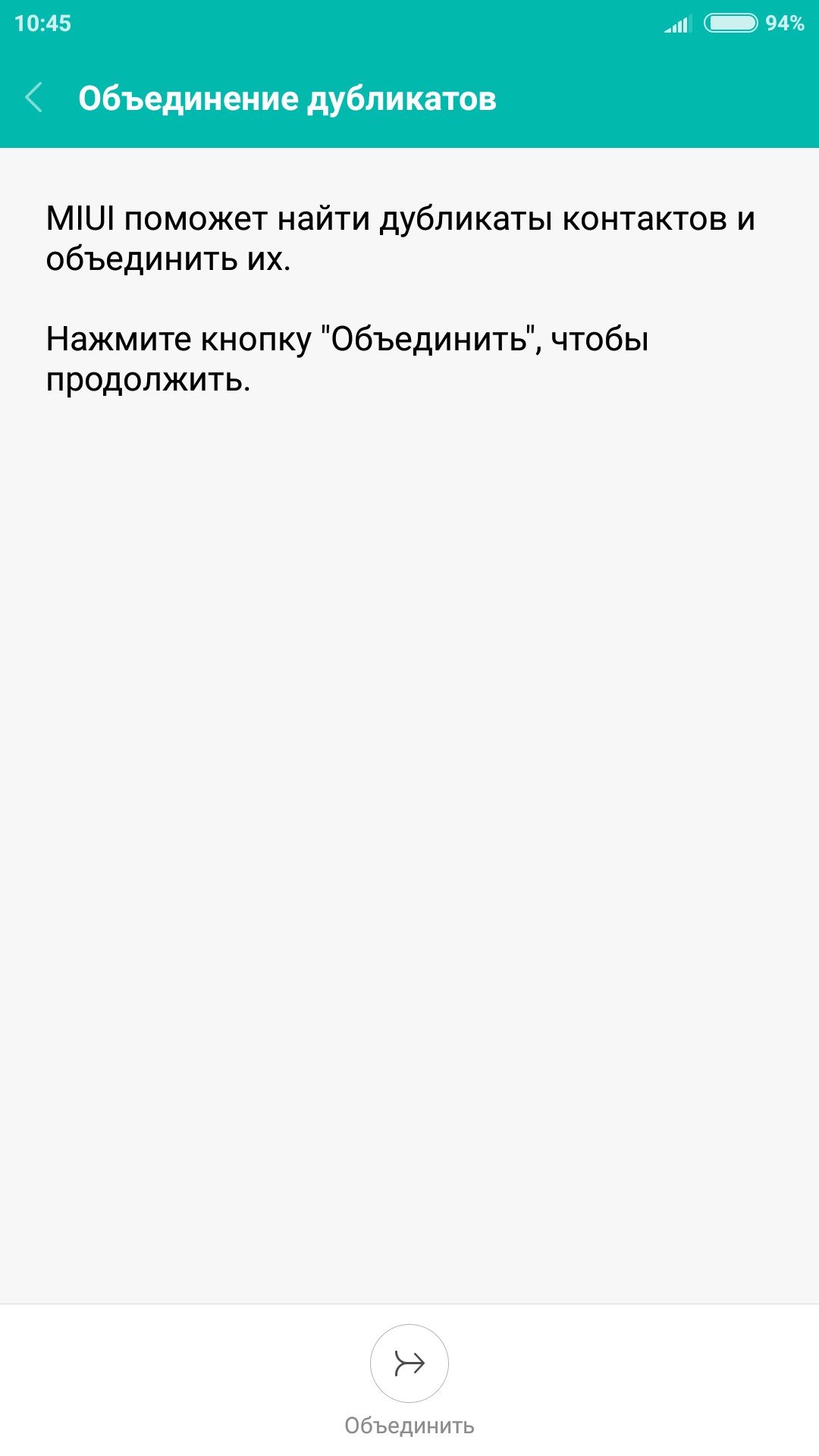 Шаг 5 . ОС предложит найти дубликаты контактов и объединить их. Нажмите кнопку «Объединить », чтобы запустить эту операцию.
