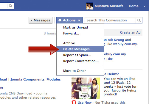 С вашей домашней страницы Facebook вы можете удалить часть сообщения, все сообщения или весь разговор за раз в соответствии с вашими потребностями.