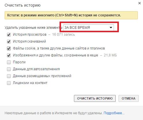 Все элементы истории (журнал посещений и загрузок, куки, кэш, активные сеансы, пароли, сохранённые данные форм, исключения для куков, изображений и всплывающих окон) для этого сайта будут удалены.