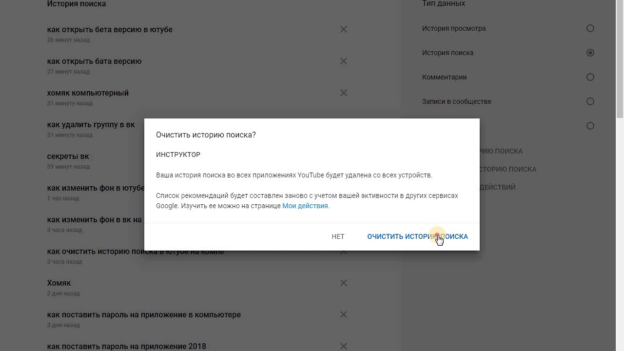 - Выберите, какую часть истории вы хотите удалить: