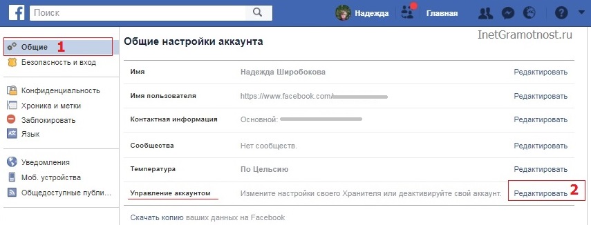 - в приложении или на сайте Facebook перейти на вкладку настроек профиля;