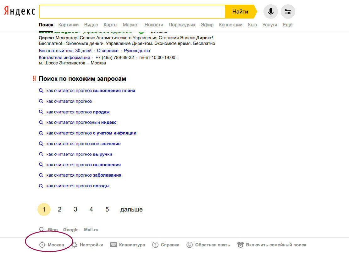 - Перейдите на страницу поиска Яндекс. Для этого достаточно ввести любой произвольный запрос в строку.