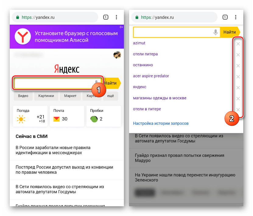 Как почистить историю поиска Яндекс в мобильном устройстве
