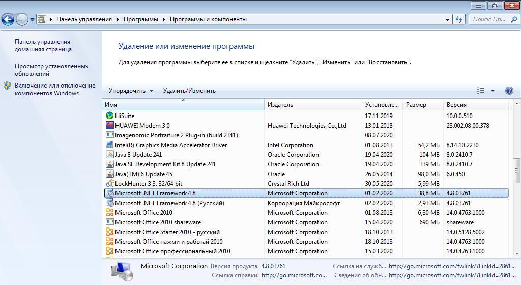Полезно! В открывшемся списке указывается дата установки ПО и его размер. Это важно знать, если вы освобождаете пространство жесткого диска и удаляете ненужный или вредоносный софт.
