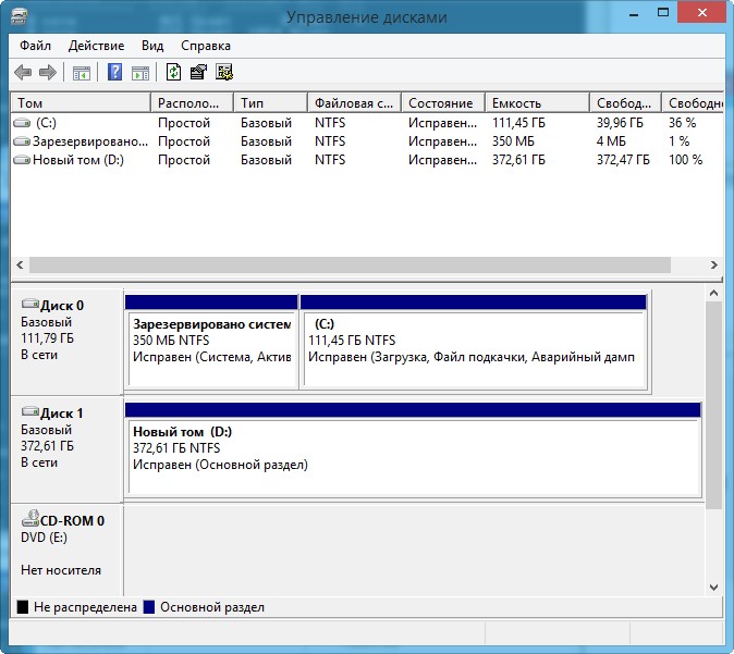 Входим в управление дисками и видим, что все разделы на винчестере удалены.