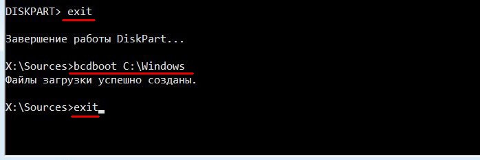 bcdboot C:\Windows (где C:, буква раздела с установленной Windows 10)