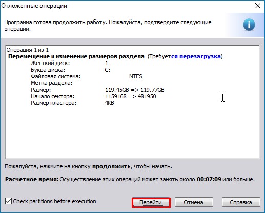 В загрузочном режиме происходит присоединение нераспределённого пространства к диску (C:).