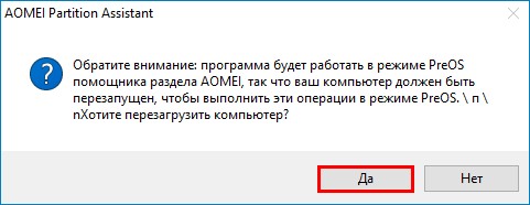 Далее программа AOMEI Partition Assistant будет работать в специальном загрузочном режиме PreOS.