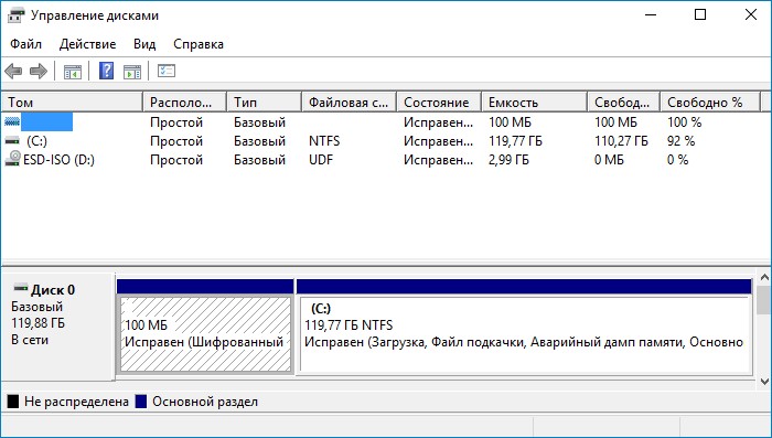 Смущает то, что между скрытым разделом со средой восстановления и диском (C:) находится другой скрытый раздел — (EFI) системный раздел (100 Мб), содержащий файлы загрузки Windows 10.